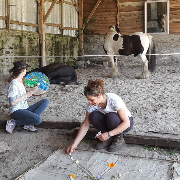 spectacle vivant avec les animaux) - Peindre sur des supports naturels, création d’amulettes